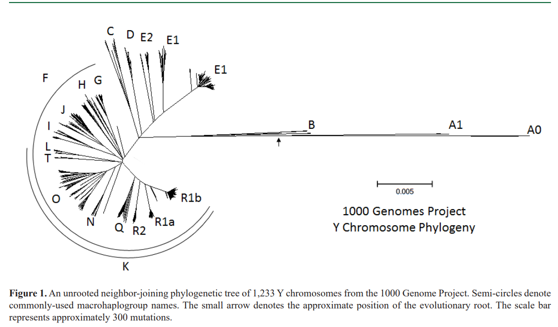 I believe Rob Carter put the arrow to show where the evolutionists place the root (out of Africa). The “true root” according to the MEGA/NJ reconstruction is the where all the branches converge right? Thanks again for your help.