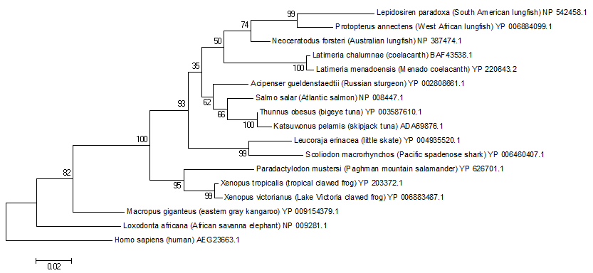 But you’re the one who wants to insist putting sharks at the root. Look what happens when I make humans the outgroup. When that is done you get a value of 100 below Kangaroos. Does that mean the Tetrapod Kangaroo and everything else below it is 100% confidence. Thanks for proving Kangaroos aren’t in the Sarcopterygiian nor the Teleostomi clade. Kangaroos are mammals they aren’t fish, and with humans (the most sequence distant from the lungfish) are put as the outgroup, you show Tetrapods don’t belong in the Teleostomi nor the Sarcopterygiian clades.
