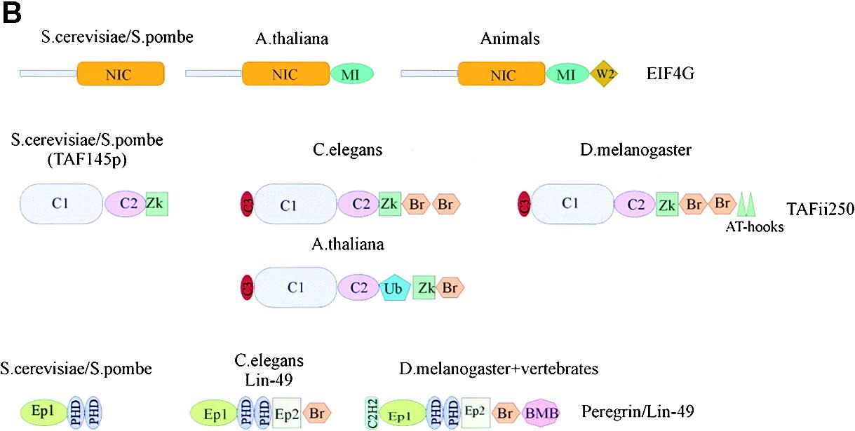 TAF145p in yeast does not have this bromo domain “reader” but TAFii250 in A. Thaliana (a plant) TAFii250 does. C. elegans and D. melanogaster have dual memory reader side by side.