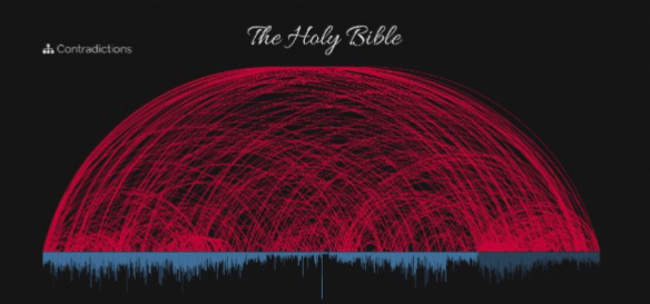 The Skeptics’ Annotated Bible and The Thinking Atheist are two of several excellent resources on biblical contradictions and absurdities. The sheer volume of contradictions, though, is best demonstrated visually as is done at BibViz: