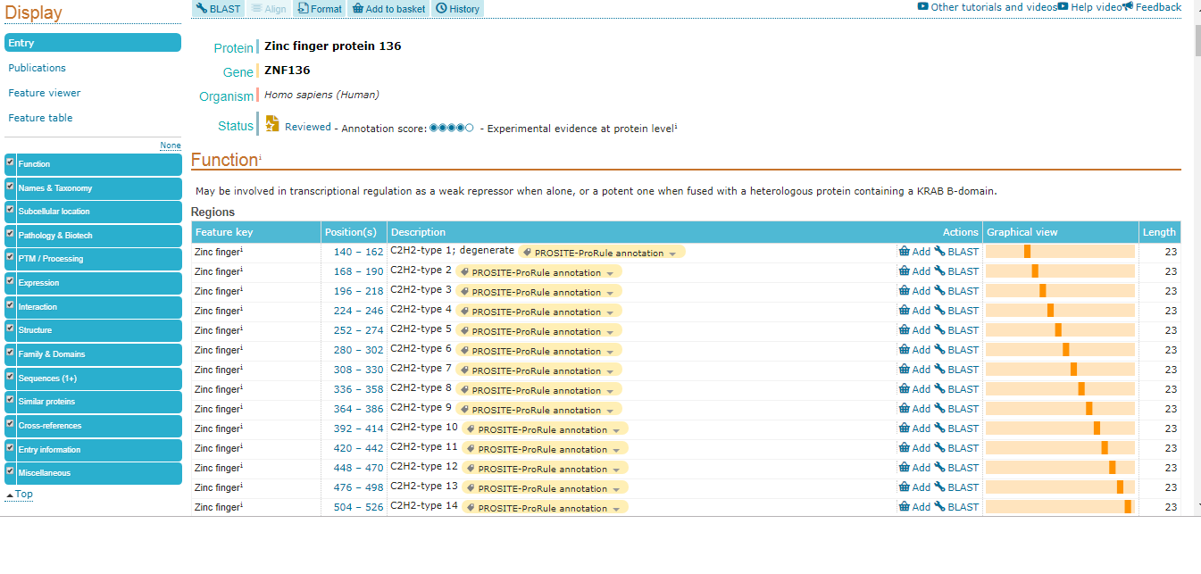 To illustrate the problem, consider the KRAB-ZnF protein known as ZNF136. For reference, this is the amino acid sequence of ZNF136: