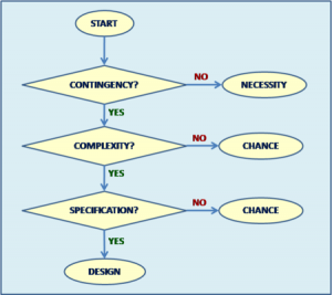 - Is a nonrandom feature caused by design or by necessity? Once randomness has been excluded, the system analyzed must be either designed as in “created by an intelligent being”, or a product of necessity as in “dictated by the physical/scientific laws”. Currently (second decision block in diagram), a design inference is made when potential human/animal designers can be identified, and a ‘necessity’ inference is made in all other cases, even when there is no known necessity mechanism (no scientific laws responsible). This design detection method is circumstantial hence flawed, and may be improved only if a clearer distinction between design and necessity is possible. For instance, the DNA-to-Protein algorithm can be written into software that all would recognize as designed when presented under any other form than having been observed in a cell. But when revealed that this code has been discovered in a cell, dogmatic allegiances kick in and those so inclined start claiming that this code is not designed despite not being able to identify any alternative ‘necessity’ scenario.