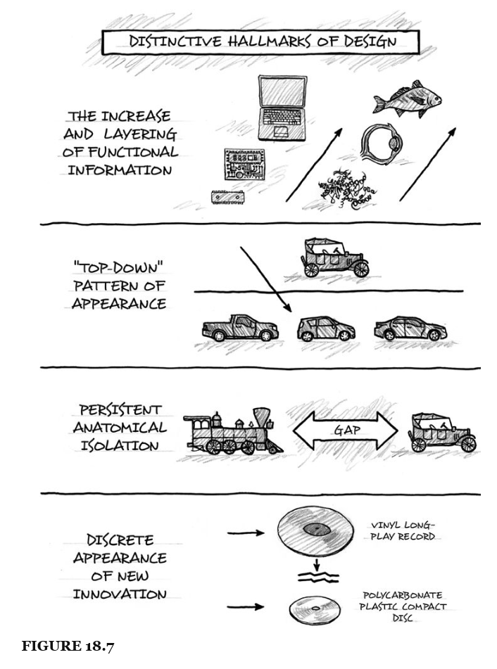 In fact, there is.  The features of the Cambrian event point decisively in another direction – not to some as-yet-undiscovered materialistic process that merely mimics the powers of a designing mind, but instead to an actual intelligent cause.  When we encounter objects that manifest any of the key features present in the Cambrian animals, or events that exhibit the patterns present in the Cambrian fossil record, and we know how these features and patterns arose, invariably we find that intelligent design played a causal role in their origin.  Thus, when we encounter these same features in the Cambrian event, we may infer – based upon established cause-and-effect relationships and uniformitarian principles – that the same kind of cause operated in the history of life.  In other words, intelligent design constitutes the best, most causally adequate explanation for the origin of information and circuitry necessary to build the Cambrian animals.  It also provides the best explanation for the top-down, explosive and discontinuous pattern of the appearance of the Cambrian animals in the fossil record.