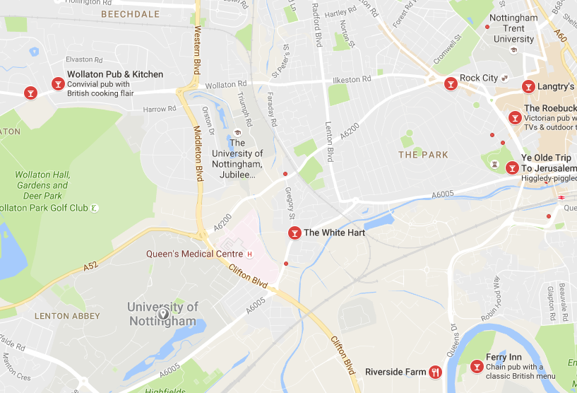 Arf. I could do nottingham. We could book the University of Nottingham’s cafeteria and pretend they endorse us.