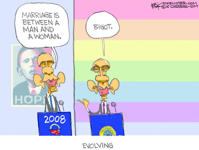 Not merely ‘constantly changing’, mind you, but rather specifically ‘constantly evolving’. 😉 What might be the difference? A sense of personal or societal ‘improvement’? Every day Barack Obama’s thoughts about ‘marriage’ improve because, well, that’s just the way he was made?!