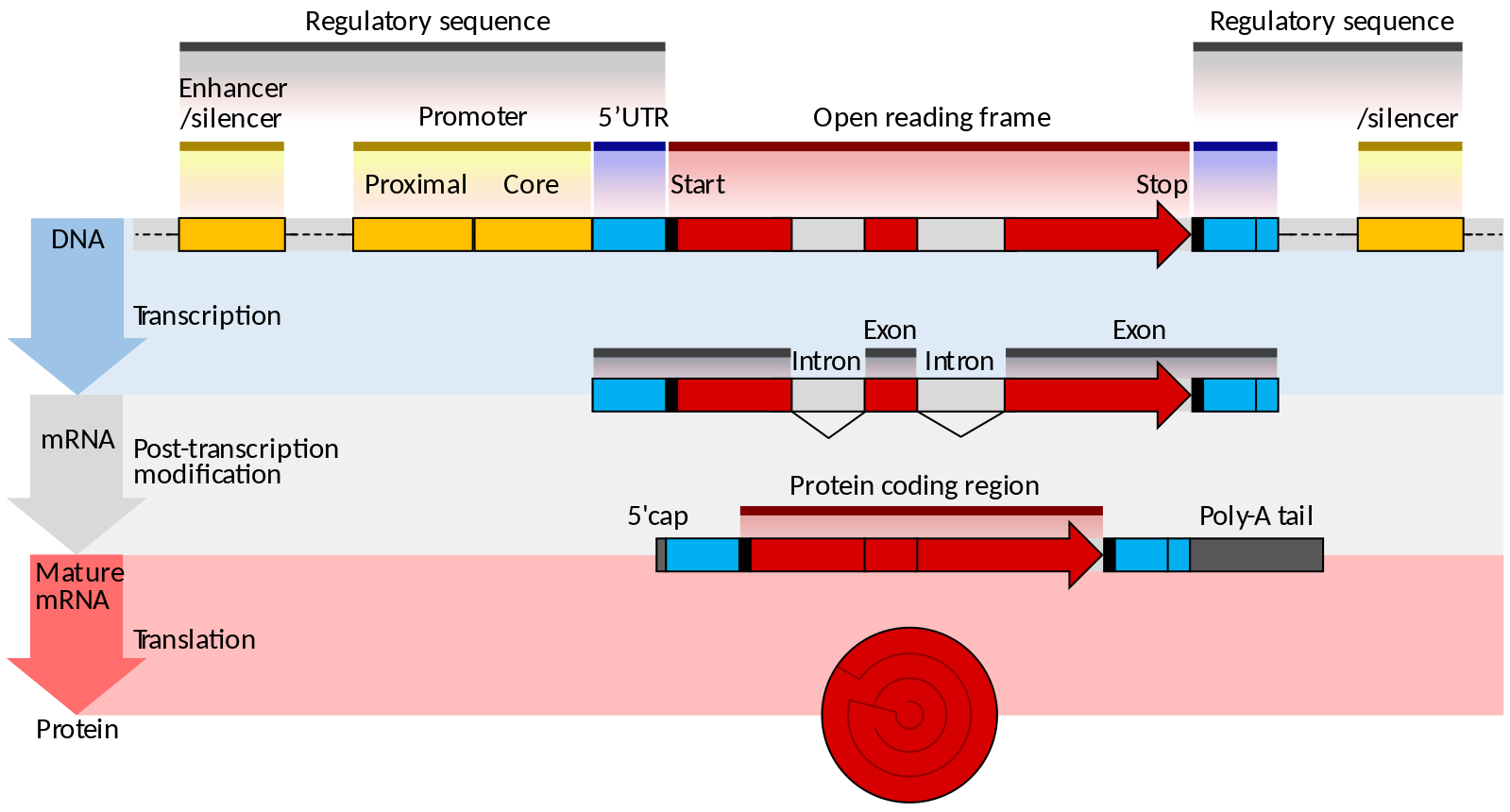 In parallel with this work, viruses contributed to a fuller understanding of gene expression control. A gene in DNA consists of a sequence transcribed into RNA, but flanked by ‘upstream’ and ‘downstream’ sequence that is not transcribed. The RNA is processed before being translated into protein, 3 RNA bases coding for each amino acid. Again ‘upstream’ and ‘downstream’ sequence is not translated, but is required for proper processing. Without these flanking sequences, the gene does nothing. Much of this picture came initially from studying and utilising viruses.