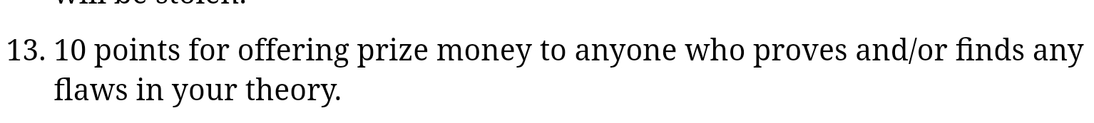 If your hypothesis demands an unknown mechanism to keep it afloat, and ignores a more obvious, known cause, so much the worse for your hypothesis. On the other hand, if such a mechanism were discovered, there would be a Nobel in it. Leading lights of the ‘no-virus’ movement seem more interested in issuing theatrical monetary challenges to the mainstream than in investigating this. In John Baez’s prescient 1998 ‘crackpot index’, that’s a 10-pointer.